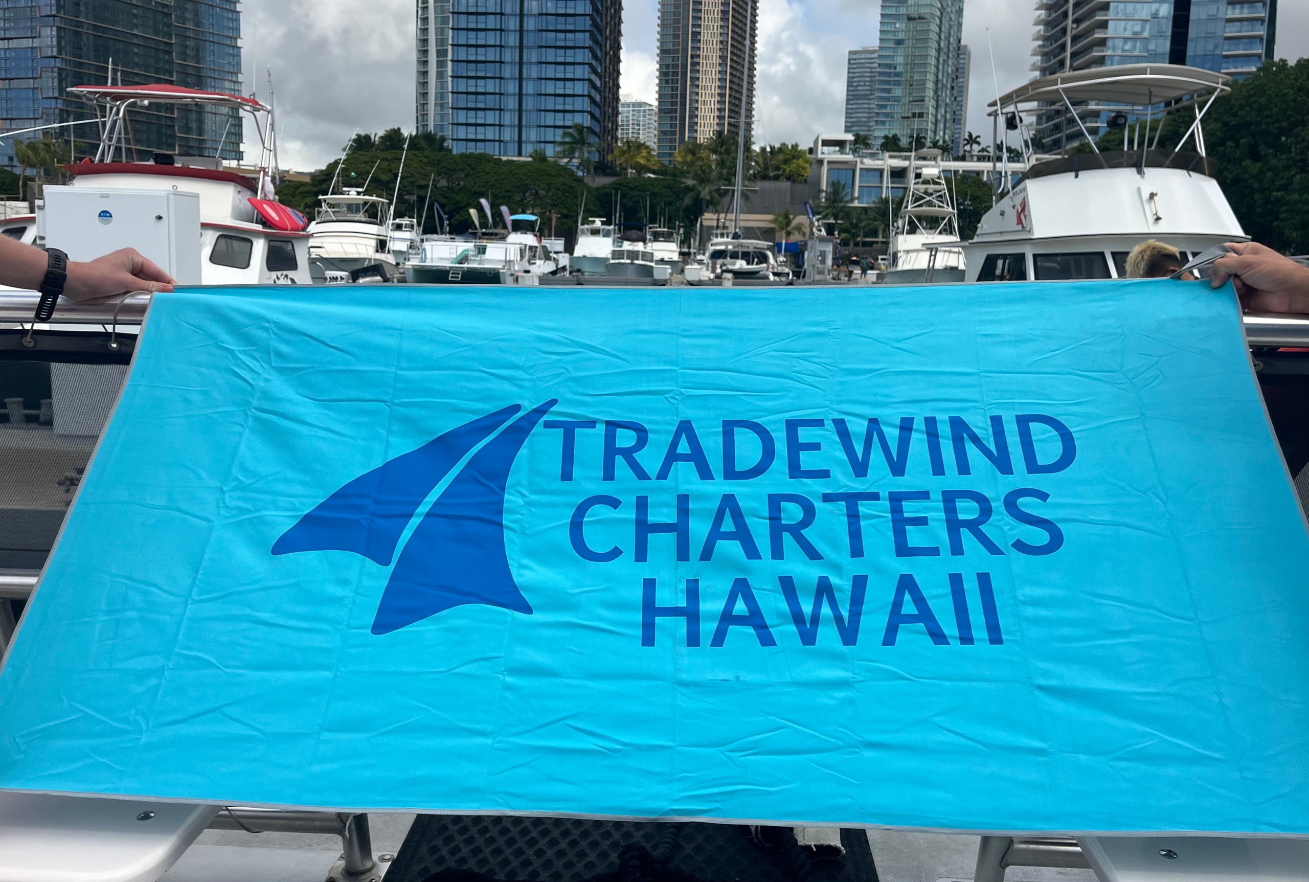 Made from soft, high performance microfiber, our quick dry towels feature a beautiful light blue design with the Tradewind Charters logo proudly displayed. Whether you’re snorkeling off Waikiki, lounging on deck, or drying off after a swim, this towel is the perfect companion for life by the water.